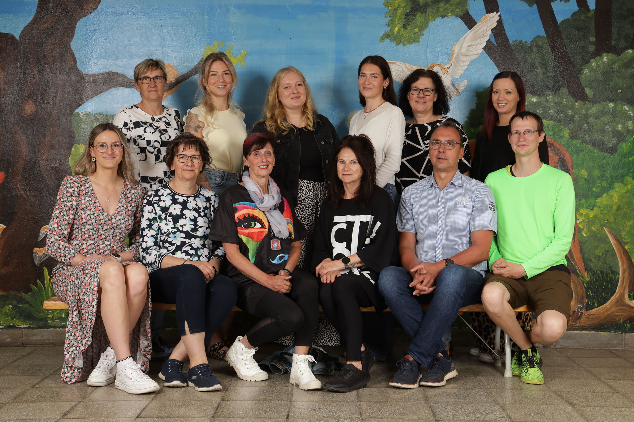 von unten links: Frau Zestermann, Frau Hörnig, Frau Foerster, Frau Unversucht, Herr Joel, Herr Müller